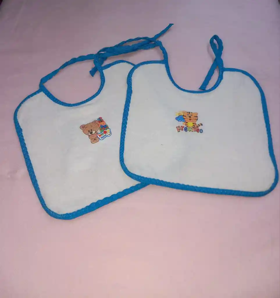 Baberos azul con blanco de toalla con forro protector. Se venden por separado.