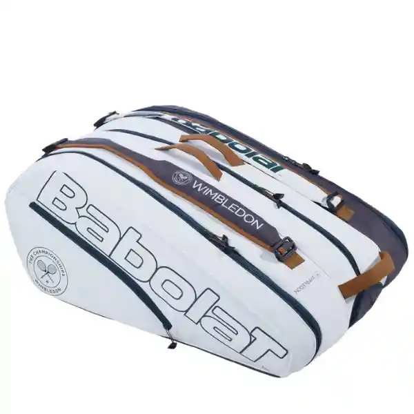 Babolat Wimbledon RH12 - está diseñada para los jugadores de alto rendimiento que buscan la mejor maleta para transportar y proteger todo su material. Tu material estará ordenado, por lo que podrás concentrarte completamente en tu juego. Hemos renovado completamente el espacio de almacenamiento para facilitarle la vida. Esta maleta totalmente aislada posee un gran compartimento central (6 raquetas), un nuevo compartimento transparente para calzado, un compartimento que puede contener 4 raquetas, un último compartimento que puede contener 2 raquetas, y bolsillos laterales para accesorios. ¡Ideal para encontrar lo que buscas de un vistazo! \n \nY porque queremos ofrecerte lo mejor, esta bolsa está fabricada con un material exterior impermeable, que garantiza protección y facilidad de mantenimiento. El interior de tu bolsa utiliza nuestro nuevo material isotérmico blanco y extremadamente resistente, facilitando la organización de su contenido y permitiéndote encontrar rápidamente lo que buscas. \n \nIncreíblemente elegante, la nueva RH12 luce los colores del famoso torneo de WIMBLEDON \n \nLos jugadores profesionnales del team BABOLAT pueden jugar con un modelo personalizado o diferente del equipamento presente.