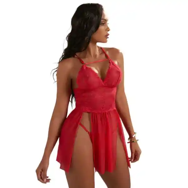 Este BabyDoll combina el poder seductor con aberturas laterales que revelan sutilmente tu figura, creando el equilibrio perfecto entre sensualidad y elegancia. Ideal para sorprender, seducir y disfrutar de momentos inolvidables. CARACTERÍSTICAS: Material: Nylon 75%, Elastane 25% Color: Rojo Talla: Unica Incluye: Babydoll Y Panty CUIDADOS: por su material requiere que sea lavado a mano usando agua fría y secado a la sombra, tenga en cuenta que al ser una prenda delicada no se recomienda el uso de desinfectantes o planchas.