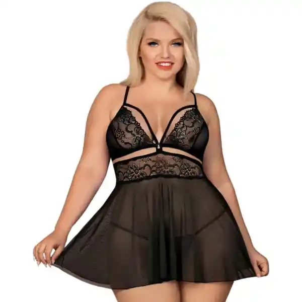 Transformando una silueta clásica en algo increíblemente sensual. Lo más destacado es el escote con tirantes flexibles que enmarcan y realzan el escote. Confeccionado en una tela transparente y seductora con encaje floral, ofrece un seductor vistazo a la piel, mientras que la espalda cruzada añade un toque de sensualidad. Ya sea para una velada romántica o simplemente para aumentar tu confianza, este conjunto es la elección perfecta para añadir un toque especial a tu dormitorio. CARACTERÍSTICAS: Material: Nylon 75%, Elastane 25% Talla: Única plus Color: Negro Incluye: Babydoll, hilo CUIDADOS: por su material requiere que sea lavado a mano usando agua fría y secado a la sombra, tenga en cuenta que al ser una prenda delicada no se recomienda el uso de desinfectantes o planchas.