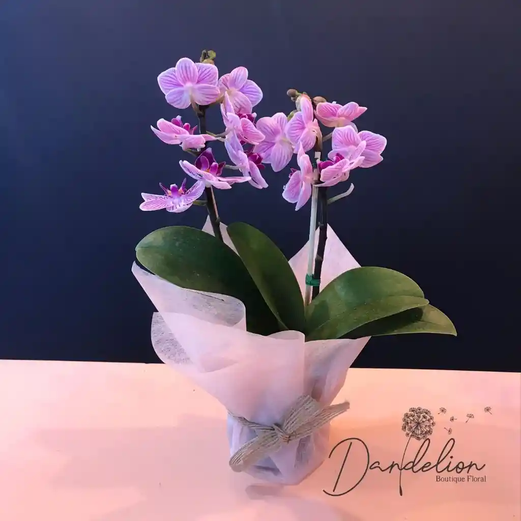 El color de las orquideas puede variar dependiendo de la disponibilidad. Nuestras orquideas son cultivadas por uno de los mejores distribuidores de orquideas en Colombia Empacada en papel regalo, listo y tarjeta personalizada Tipo: Phalaenopsis Altura Promedio: 10 a 20 cm Matera: Cerámica impermeabilizada Floración: en Promedio de 2 a 6 meses, si sigues nuestras indicaciones de cuidado. Orquidea de color Lila con Matera decorativa Si, de 2 espigas