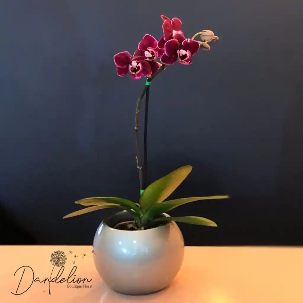 Hermosa Baby Orquídea de 1 espiga en Matera de Cerámica en colores variados. El color de la matera y de las orquídeas puede variar dependiendo de la disponibilidad. Todos nuestros productos incluyen papel de regalo, liston y tarjeta. Nuestras orquideas son cultivadas por uno de los mejores distribuidores de orquideas en Colombia Tipo: Phalaenopsis Altura Promedio: 10 a 20 cm Matera: Cerámica impermeabilizada Floración: en Promedio de 2 a 6 meses, si sigues nuestras indicaciones de cuidado.