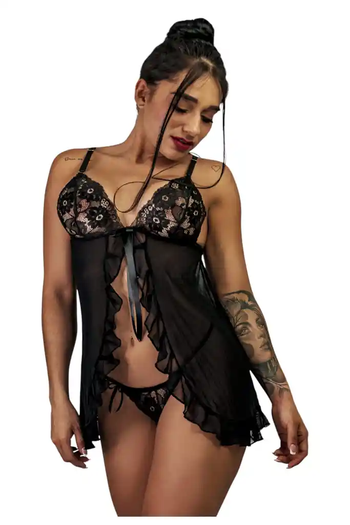 Copa triangular sin barilla Detalle de anudado al frente Abertura frontal con detalle romantico Ajustable talla s-m-l Cuidados : lavar a mano o en proceso de ropa delicada. Negro