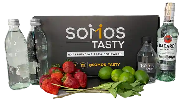 1 Bacardí Ron Botella De 375 Ml + 2 Bretaña Sodas Botella De 300 Ml C/U + Limón 500 G + Almíbar 250 Ml + Fresas 500 G + Yerbabuena 10 G + Recetario. Ingredientes Para Preparar Con Ron 7 Cócteles Mojito De Fresa. | . Prohíbase El Expendio De Bebidas Embriagantes A Menores De Edad Ley 124 1994.