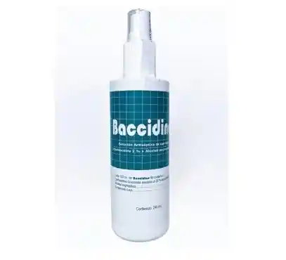 Solución antiséptica de uso externo indicada para preparación preoperatoria , venopunción y cateterismo. Cada 100 ml de BACCIDINE contienen: Gluconato de Clorhexidina – 2.0 g.