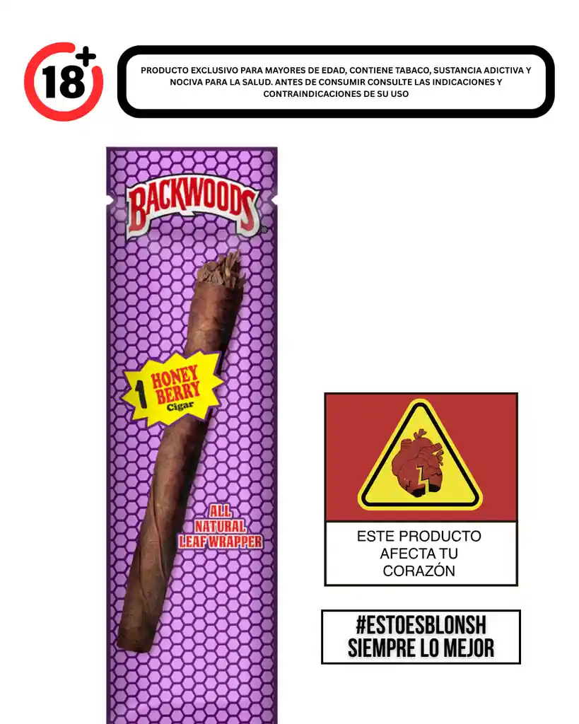 Backwoods tabacos honey berry x1 El tabaco es nocivo para la salud. Ley 30 de 1986. Verificar condiciones de uso, indicaciones y contraindicaciones en la etiqueta. Prohibida la venta a menores de edad