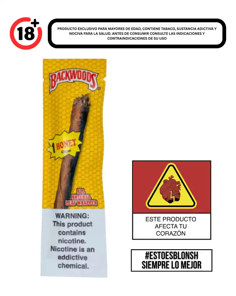 Encuentra la variedad de sabores que ofrece BACKWOODS, en blonsh siempre lo mejor El tabaco es nocivo para la salud. Ley 30 de 1986. Verificar condiciones de uso, indicaciones y contraindicaciones en la etiqueta. Prohibida la venta a menores de edad