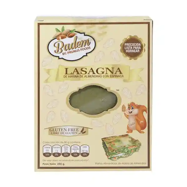 Pasta para lasagna a base de harina de almendras y espinaca