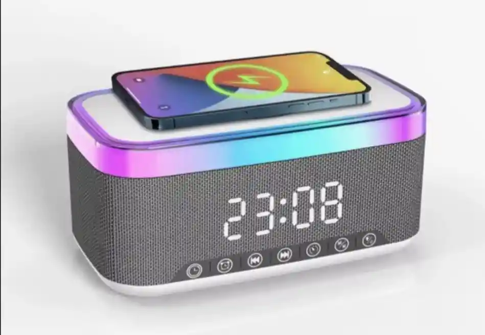 Micrófono inalámbrico con parlante portátil y luces LED RGB, ideal para karaoke y eventos. Fácil de usar y llevar a cualquier lugar