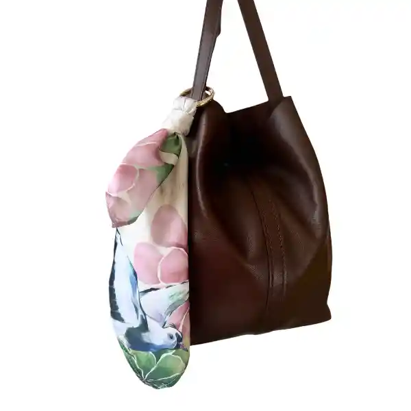 Pañuelo de seda satín 35cm x 35cm Print de Alcaravanes rosado y verde, con arnés.