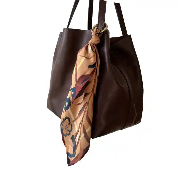 Pañuelo de seda satín 35cm x 35cm Print de Flores Ocre, con arnés.