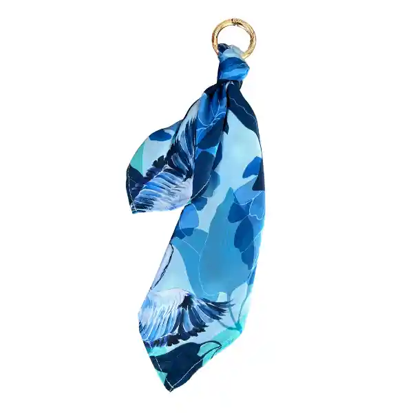 Pañuelo de seda satín 35cm x 35cm Print de Garzas azul, con arnés.
