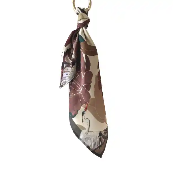 Pañuelo de seda satín 35cm x 35cm Print de Garzas Ocre, con arnés.