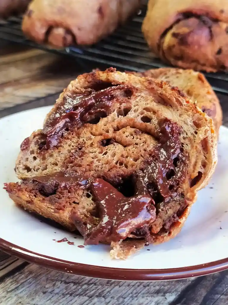 No existe baguette de chocolate como la nuestra. ¡Chocolatosa y saludable! 100% masa madre con harinas integrales. con 100% cacao (hersheys) rellena de pedacitos de chocolate sin azúcar y un ganache de chocolate vegano absolutamente delicioso. LIBRE DE AZÚCAR, POLIALCOHOLES, HUEVO, MANTEQUILLAS, MARGARINAS, LÁCTEOS Y LEVADURAS. Toda nuestra panadería es 100% masa madre. Todos nuestros panes son integrales llenos de fibra. Durante nuestros procesos de fermentación de 24-48h la masa madre descompone hasta un 95% el gluten y llena al pan de probiótico y prebióticos. Resulta en un pan que no te va a inflamar, que tiene un sabor y textura incomparable y que además es el alimento necesario para nutrir y recuperar la microbiota del intestino. ¡La salud nace en nuestro intestino!