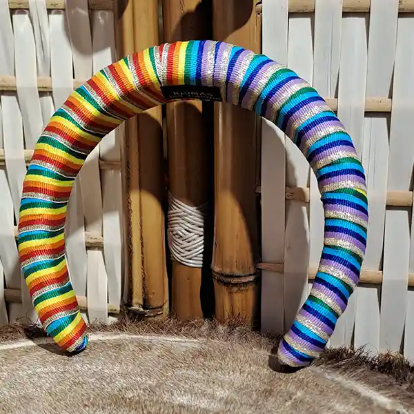 Es una diadema flexible como base, forrada y decorada en su alrededor con textil recuperado dándole forma voluminosa y creando firmeza con puntadas a mano. Inspiración: Esta inspirado en la diversidad femenina, diversidad y equidad de género Upcycling: Nuestros productos son únicos ya que reutilizamos textiles para mitigar un poco más la carga de la industria de la moda. Beneficios: Son piezas que no aprietan, no tallan ni molestan. Horman la cabeza para mayor ajuste. Nuestras joyas crean un efecto de empoderamiento y belleza a la hora de colocárselos. Manejamos textiles de excelente calidad Garantía: Nuestros productos tienen 6 meses de garantía (No se devuelve dinero, solo se cambia por un producto de la misma referencia o del mismo valor, en caso de no tener el mismo valor y superarlo, el cliente tiene que asumir y pagar el excedente). Lavado: Estos son piezas que no se pueden meter en lavadoras ni secadoras. Se limpia con un pañito semi húmedo y con Frotex como jabón para desmanchar No aplicarle ni químicos, Clorox, Varsol, entre otros productos. Dejar secar al clima Recomendaciones: Para evitar que tu producto corra el riesgo de mancharse o dañarse por algún líquido, recomendamos guardar en su mismo empaque después del uso. Se puede utilizar con todo tipo de ropa, tanto monocromático como contrastado. Se usa un poco más adelante de la mitad de la cabeza Se puede usar sobre el cabello o recogiéndolo (Esto va a gusto de la persona) La diadema va detrás de las orejas. Se puede usar en el diario, trabajo, vacaciones o para eventos especiales (Esto va a gusto de la persona)