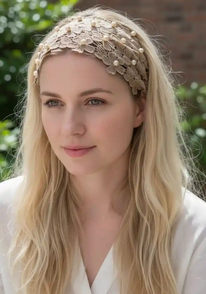 Balaca en tejido floral con perla café