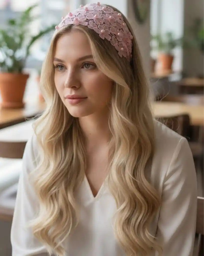 Balaca en tejido floral con perla rosada