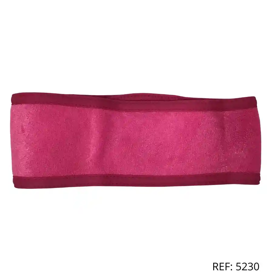Vincha fucsia con velcro, perfecta para sujetar el cabello en limpieza facial.