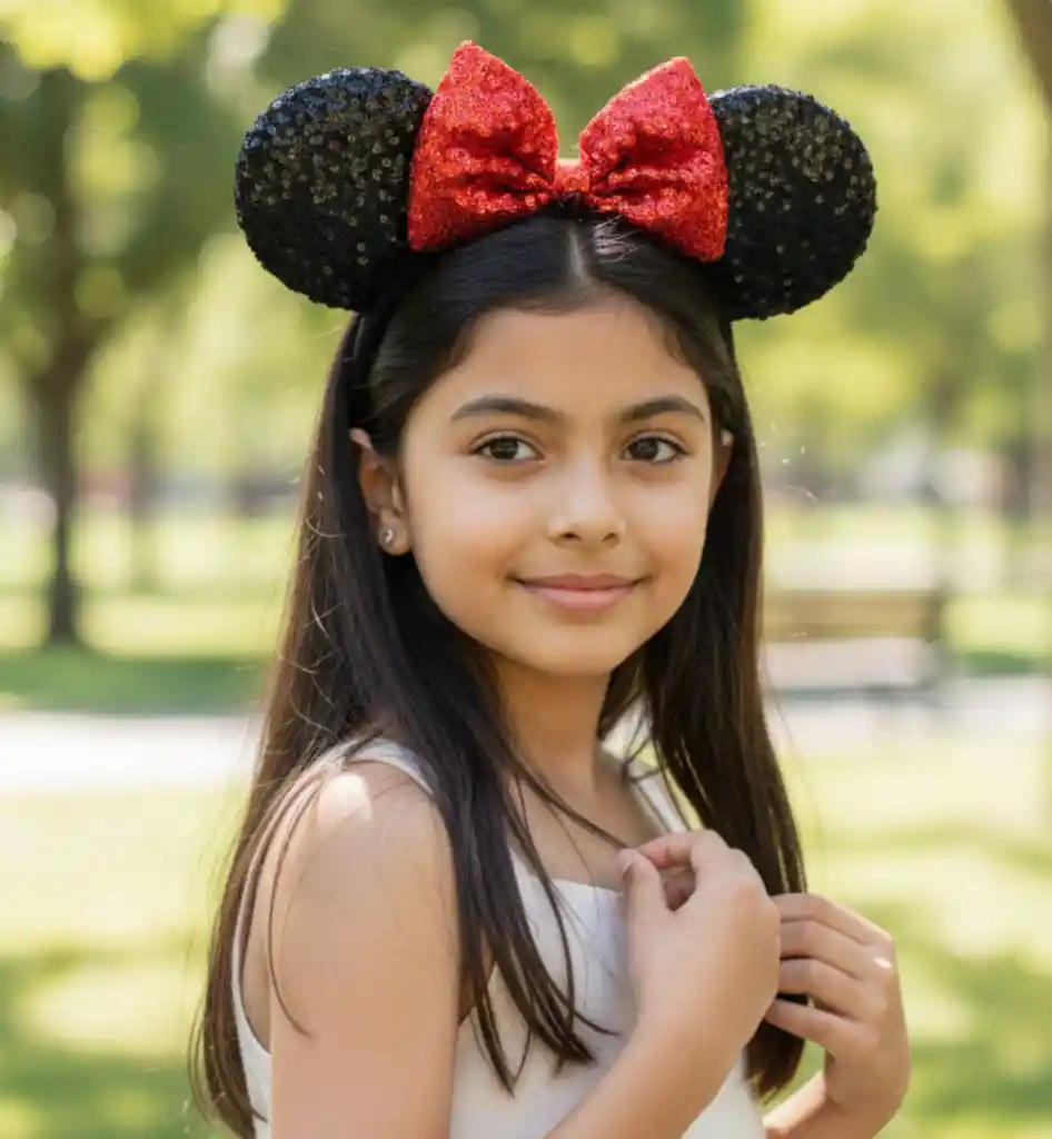 Balaca orejas de Minnie en lentejuelas para niña o dama en corbatin rojo