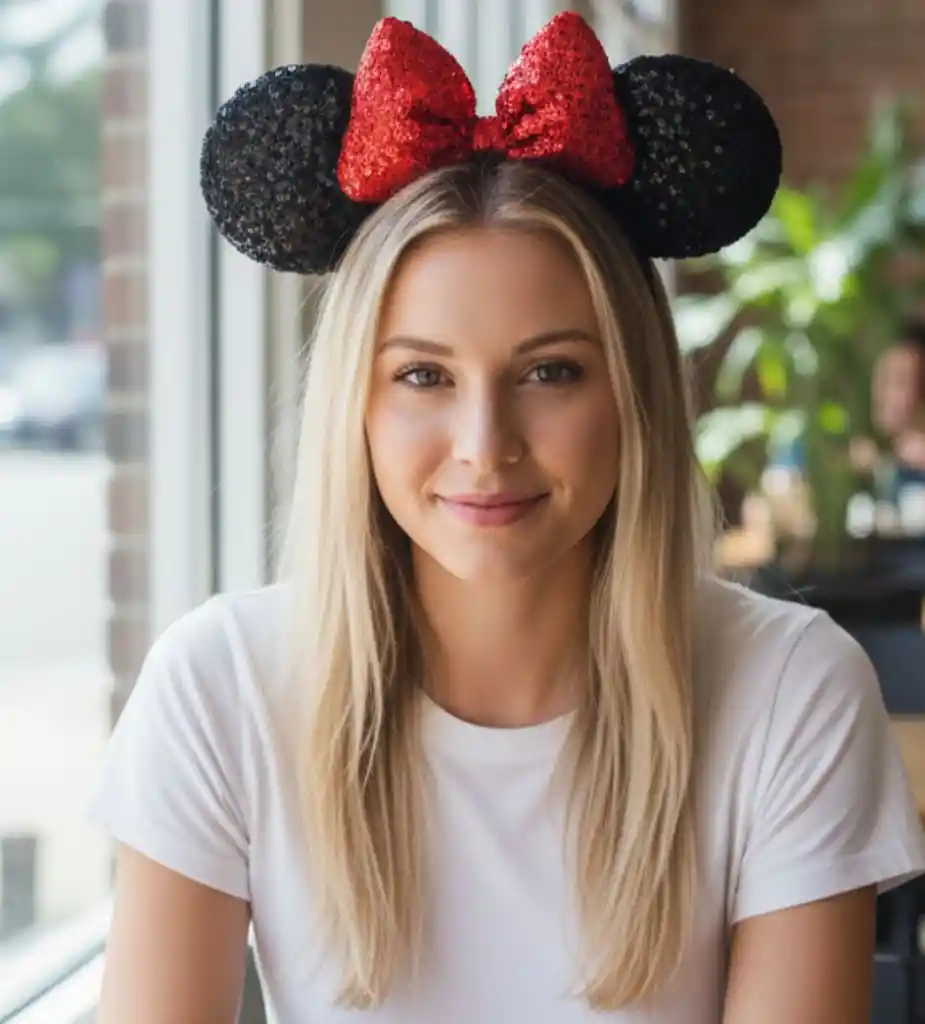 Balaca orejas de Minnie en lentejuelas para niña o dama en corbatin rojo