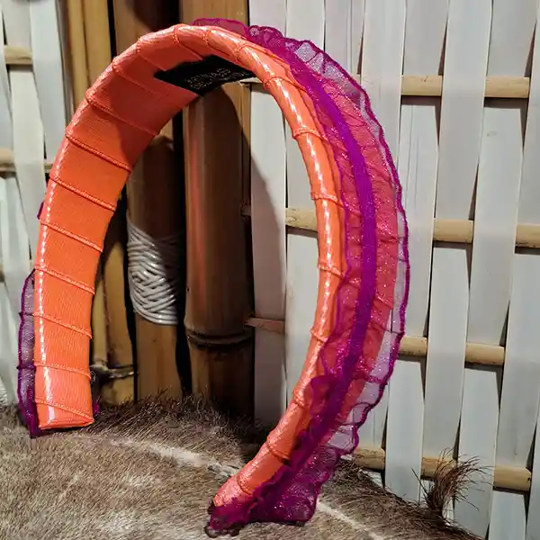 Es una diadema flexible como base, forrada y decorada en su alrededor con textil recuperado dándole una forma plana y creando firmeza con puntadas a mano. Upcycling: Nuestros productos son únicos ya que reutilizamos textiles para mitigar un poco más la carga de la industria de la moda. Beneficios: Son piezas que no aprietan, no tallan ni molestan. Horman la cabeza para mayor ajuste. Nuestras joyas crean un efecto de empoderamiento y belleza a la hora de colocárselos. Manejamos textiles de excelente calidad Garantía: Nuestros productos tienen 6 meses de garantía (No se devuelve dinero, solo se cambia por un producto de la misma referencia o del mismo valor, en caso de no tener el mismo valor y superarlo, el cliente tiene que asumir y pagar el excedente). Lavado: Estos son piezas que no se pueden meter en lavadoras ni secadoras. Se limpia con un pañito semi húmedo y con Frotex como jabón para desmanchar No aplicarle ni químicos, Clorox, Varsol, entre otros productos. Dejar secar al clima Recomendaciones: Para evitar que tu producto corra el riesgo de mancharse o dañarse por algún líquido, recomendamos guardar en su mismo empaque después del uso. Se puede utilizar con todo tipo de ropa, tanto monocromático como contrastado. Se usa un poco más adelante de la mitad de la cabeza Se puede usar sobre el cabello o recogiéndolo (Esto va a gusto de la persona) La diadema va detrás de las orejas. Se puede usar en el diario, trabajo, vacaciones o para eventos especiales (Esto va a gusto de la persona)