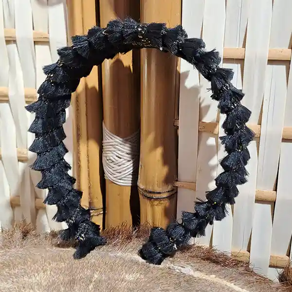 Es una diadema flexible como base, forrada y decorada en su alrededor con textil recuperado dándole una forma plana y creando firmeza con puntadas a mano. Upcycling: Nuestros productos son únicos ya que reutilizamos textiles para mitigar un poco más la carga de la industria de la moda. Beneficios: Son piezas que no aprietan, no tallan ni molestan. Horman la cabeza para mayor ajuste. Nuestras joyas crean un efecto de empoderamiento y belleza a la hora de colocárselos. Manejamos textiles de excelente calidad Garantía: Nuestros productos tienen 6 meses de garantía (No se devuelve dinero, solo se cambia por un producto de la misma referencia o del mismo valor, en caso de no tener el mismo valor y superarlo, el cliente tiene que asumir y pagar el excedente). Lavado: Estos son piezas que no se pueden meter en lavadoras ni secadoras. Se limpia con un pañito semi húmedo y con Frotex como jabón para desmanchar No aplicarle ni químicos, Clorox, Varsol, entre otros productos. Dejar secar al clima Recomendaciones: Para evitar que tu producto corra el riesgo de mancharse o dañarse por algún líquido, recomendamos guardar en su mismo empaque después del uso. Se puede utilizar con todo tipo de ropa, tanto monocromático como contrastado. Se usa un poco más adelante de la mitad de la cabeza Se puede usar sobre el cabello o recogiéndolo (Esto va a gusto de la persona) La diadema va detrás de las orejas. Se puede usar en el diario, trabajo, vacaciones o para eventos especiales (Esto va a gusto de la persona)