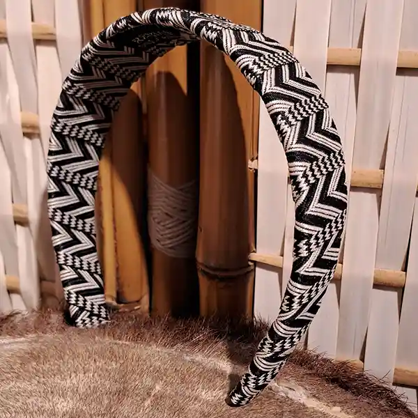 Es una diadema flexible como base, forrada y decorada en su alrededor con textil recuperado dándole una forma plana y creando firmeza con puntadas a mano. Inspiración: Esta inspirado en el sombrero vueltiao, autóctono de la región caribe y nombrado como símbolo cultural de la nación, Upcycling: Nuestros productos son únicos ya que reutilizamos textiles para mitigar un poco más la carga de la industria de la moda. Beneficios: Son piezas que no aprietan, no tallan ni molestan. Horman la cabeza para mayor ajuste. Nuestras joyas crean un efecto de empoderamiento y belleza a la hora de colocárselos. Manejamos textiles de excelente calidad Garantía: Nuestros productos tienen 6 meses de garantía (No se devuelve dinero, solo se cambia por un producto de la misma referencia o del mismo valor, en caso de no tener el mismo valor y superarlo, el cliente tiene que asumir y pagar el excedente). Lavado: Estos son piezas que no se pueden meter en lavadoras ni secadoras. Se limpia con un pañito semi húmedo y con Frotex como jabón para desmanchar No aplicarle ni químicos, Clorox, Varsol, entre otros productos. Dejar secar al clima Recomendaciones: Para evitar que tu producto corra el riesgo de mancharse o dañarse por algún líquido, recomendamos guardar en su mismo empaque después del uso. Se puede utilizar con todo tipo de ropa, tanto monocromático como contrastado. Se usa un poco más adelante de la mitad de la cabeza Se puede usar sobre el cabello o recogiéndolo (Esto va a gusto de la persona) La diadema va detrás de las orejas. Se puede usar en el diario, trabajo, vacaciones o para eventos especiales (Esto va a gusto de la persona)