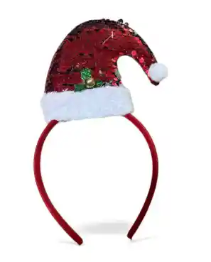 Tiara balaca o diadema con un sombrerito brillante de color rojo y cambia a plateado por las lentejuelas