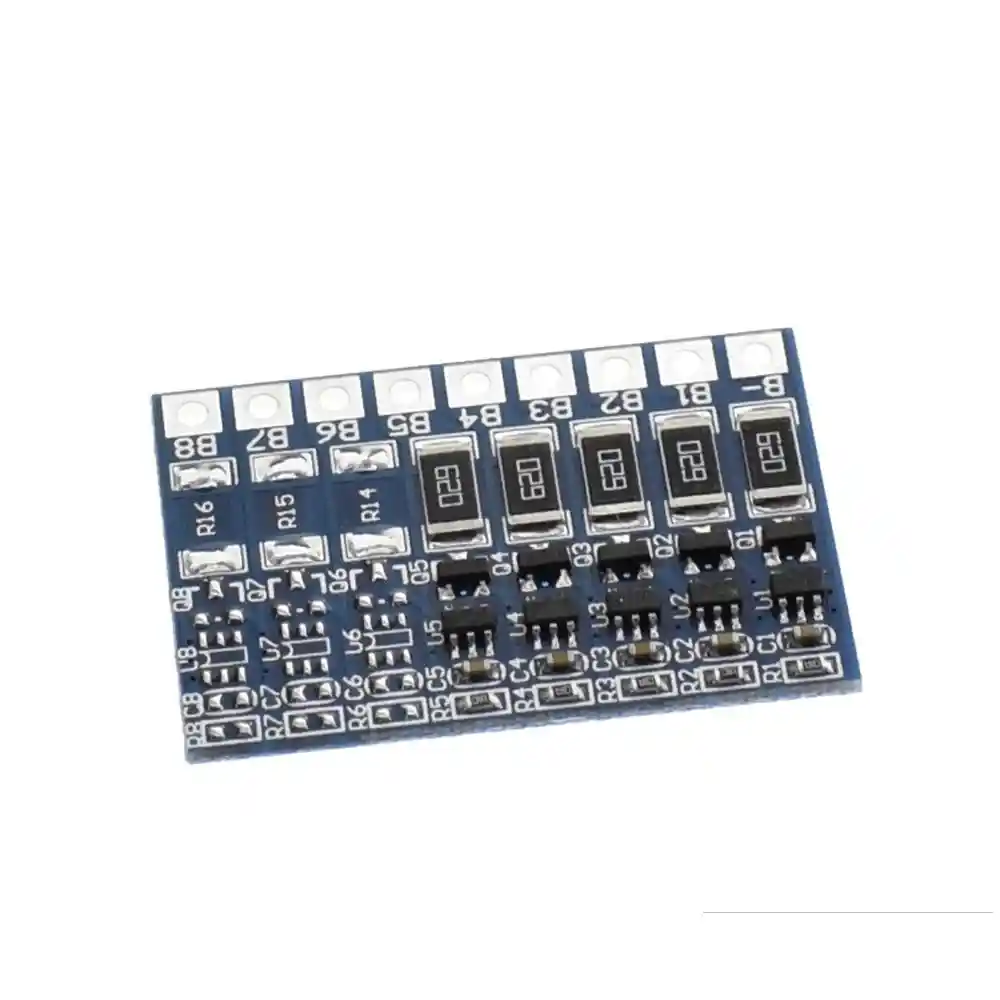 Voltaje Balance para cada celula individual: 4.2V Corriente idividual de balanceo: 66mA Equilibrador es solo una funcion auxiliar, T que significa equilibrar cuando la carga de la bateria, bateria de la necesidad de cada serie con el mismo voltaje de la celula voltage.when UNO get 4.2V, las otras no es asi, el primer voltaje de la celula se descargara que esperar las otras creciente al mismo nivel. bateria diferencias de la resistencia internas dentro de 5 miliohmios , el voltaje dentro de 0,03 V de tension, la capacidad varian dentro de 50 mA B - Conecta el negativo de la bateria. B1 Conecte la bateria 1 a los contactos en la bateria 2 B2 Conecte la bateria 2 a los contactos en la bateria 3 B3 Conecte la bateria 3 a los contactos en la bateria 4 B4 Conecte la bateria 4 a los contactos en la bateria 5 B5 Conectar la bateria positiva. LA COMPRA INCLUYE: 1x BALANCEADOR BATERIAS Li-po 5 CELDAS