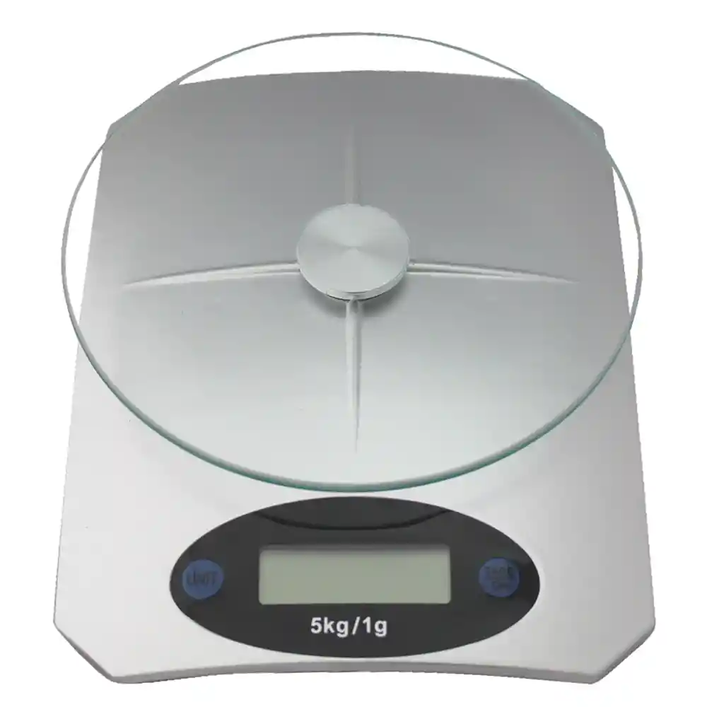 Con esta báscula digital podrá pesar todos sus ingredientes de manera rápida y precisa, lo cual necesitará si quiere acertar en sus recetas. está equipada con una gran pantalla LCD y sirve para un peso máximo de 5kg si pones mas peso aparece un mensaje de error. Con la función de peso TARA podrá deducir el peso del recipiente utilizado o añadir más ingredientes poniendo para cada uno el contador a cero. Características destacadas Bandeja redonda. Visor digital LCD. Usos: Cocina, restaurantes, joyerías, negocios, otros. Usa dos pilas AA Graduación: de 1 en 1gr. Incluye: indicador de batería baja. Auto apagado cuándo no esta en uso. Botón de selección gramos u onzas Función tare. Función error de sobrecarga. Fácil limpieza.