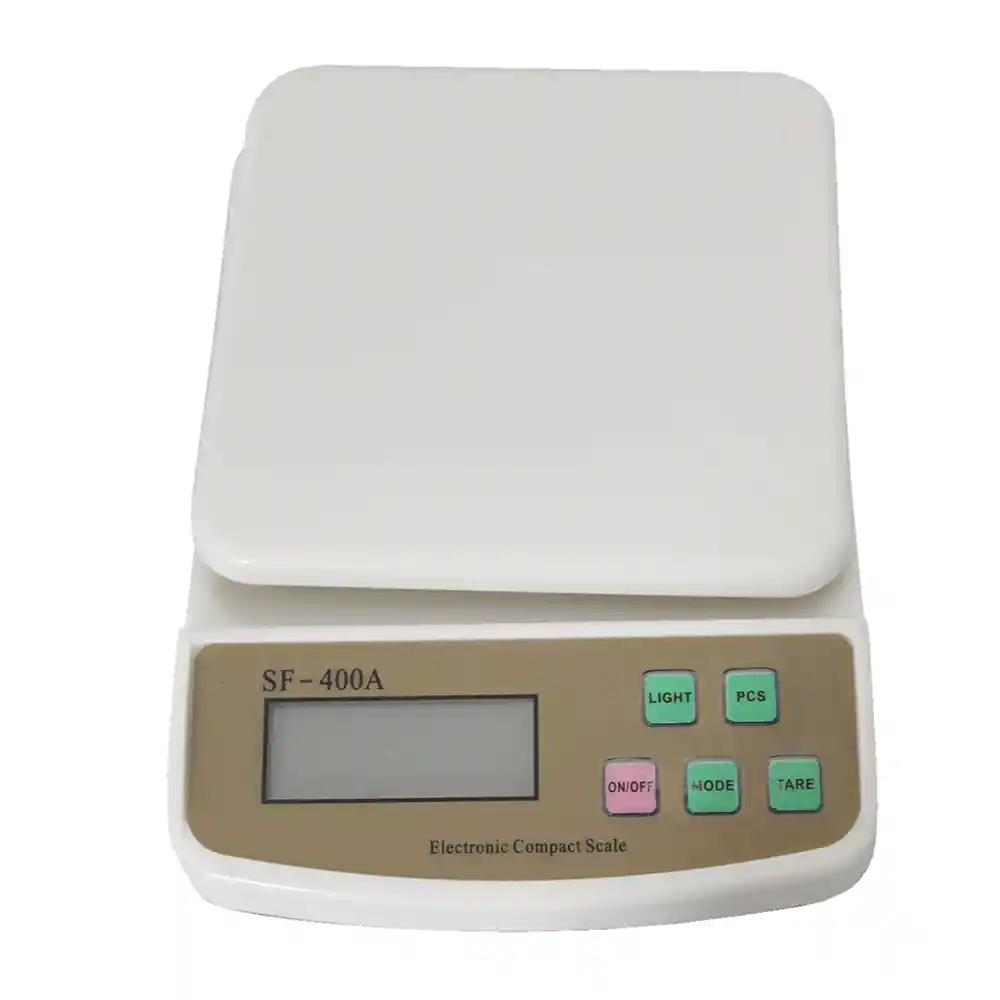 Con esta báscula digital podrá pesar todos sus ingredientes de manera rápida y precisa, lo cual necesitará si quiere acertar en sus recetas. está equipada con una gran pantalla LCD y sirve para un peso máximo de 5kg si pones mas peso aparece un mensaje de error. Con la función de peso TARA podrá deducir el peso del recipiente utilizado o añadir más ingredientes poniendo para cada uno el contador a cero Características destacadas Bandeja redonda. Visor digital LCD. Usos: Cocina, restaurantes, joyerías, negocios, otros. Usa dos pilas AA Graduación: de 1 en 1gr. Incluye: indicador de batería baja. Auto apagado cuándo no esta en uso. Botón de selección gramos u onzas Función tare. Función error de sobrecarga. Fácil limpieza.
