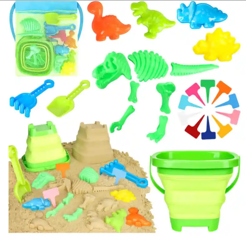 Juguetes de playa de dinosaurios de gran valor para niños: el juego de juguetes de playa incluye 7 moldes de fósiles de dinosaurios, 4 moldes de dinosaurios, 1 cubo de playa plegable, 1 bolsa de playa de malla, 1 pala de playa, 1 rastrillo de playa, placa de etiquetas colorida (10 colores). Los juguetes de caja de arena para niños y niños pequeños les ayudan a tener horas de diversión en el verano. El juego de juguetes de playa de dinosaurios es realmente un éxito para los amantes de los dinosaurios. Cubo de playa plegable multifuncional: los juguetes de playa para niños pequeños están equipados con un cubo de playa de silicona plegable, el cubo de playa también es un gran molde de playa de castillo. También es perfecto para un enfriador de bebidas, limpieza, lavado, etc. Un cubo plegable es duradero y fácil de almacenar, ahorrando espacio. Fabricado con material de silicona duradero de alta calidad que hace que la calidad sea mejor que otros cubos de playa de plástico. Bolsa de playa de malla fácil de transportar y almacenar: todos los juguetes de arena están empaquetados en una bolsa de playa de alta calidad, la bolsa de playa de malla es perfecta para ir a la playa, de vacaciones, etc. El diseño de malla transpirable hará que se seque rápidamente y puede ayudar a drenar la arena y el agua. La bolsa de malla para juguetes de arena es muy conveniente para llevar y almacenar juguetes de arena de playa para actividades al aire libre y viajes a la playa. Molde colorido de arena de dinosaurio: diseño de dinosaurio perfecto para los amantes de los dinosaurios. Puedes construir un mini mundo de dinosaurios con moldes de fósiles de dinosaurios y 4 tipos diferentes de moldes de dinosaurio. Nuestros juguetes de playa pueden ayudar a los niños a usar su imaginación para crear múltiples formas temáticas de castillos de arena. Cuando los niños lo terminen, estarán muy emocionados y disfrutarán de toneladas de diversión. Además, hemos añadido 10 colores de placas de etiquetas, y los niños pueden jugar juegos con las etiquetas y los fósiles de dinosaurios usando su imaginación. SOMOS KOBALT STORE