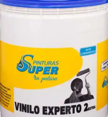 Balde Vinilo Experto Tipo 2 Pinturas Super (2.5 Gal.) Pintura base agua-emulsión de uso arquitectónico fabricada con resinas y materias primas de alta calidad, que generan un acabado mate de excelente blancura, buen cubrimiento y alto rendimiento. Presenta buena resistencia al salpique, óptima adherencia y facilidad de aplicación. Para la protección y decoración de superficies como mampostería, pañete, estuco y materiales de fibro cemento en ambientes interiores.