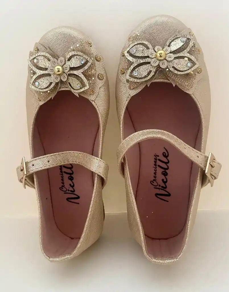 1 Par de Baletas Bebe/Niñas, talla 24 color Dorado
