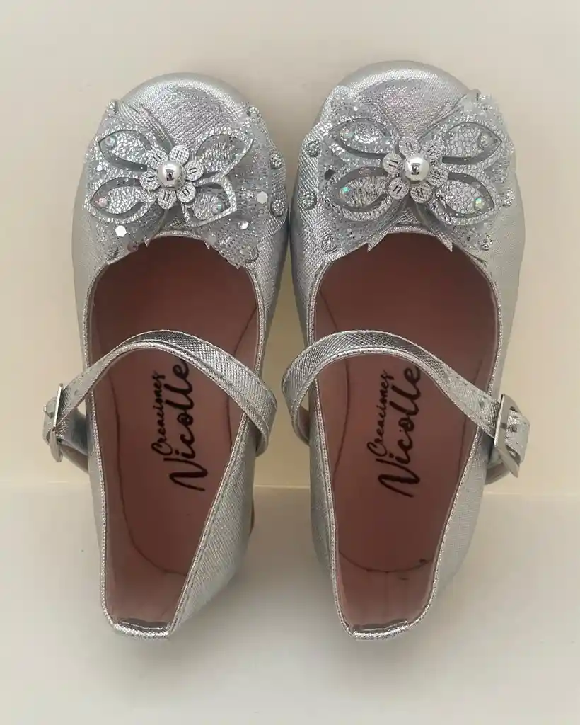 1 Par de Baletas Bebe/Niñas, talla 25 color plateado
