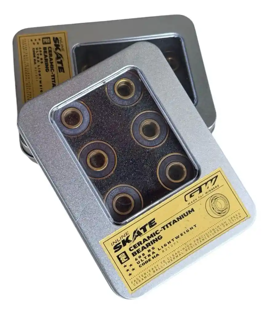 Eleva tu nivel de patinaje con este set de balineras profesionales GW Originales. Gracias a su construcción combinada de esferas de cerámica y titanio, ofrecen una velocidad superior, menor fricción y una rotación mucho más suave. Características principales: Referencia: GW 608 RS. Material: Balines de cerámica con recubrimiento en titanio (mayor resistencia térmica y al desgaste). Diseño Ultra Ligero: Reduce el peso total de las ruedas para mayor agilidad. Mantenimiento: Fáciles de limpiar ("Easy to clean") gracias a su sello protector RS que evita que entre el polvo. Rendimiento: Alta precisión, máxima velocidad (High Speed) y resistencia térmica. Presentación en estuche metálico de lujo. Perfectas para patinaje de carreras, patines en línea urbanos o skateboard.