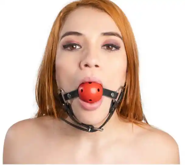 Mordaza Ball Gag Iver La mordaza Ball Gag Iver es demasiado sensual y adaptable para principiantes, puesto que la bola de goma roja contiene los orificios indicados para controlar la respiración. Amordaza, juega, sujeta y explora todas las preferencias dentro del BDSM. El erotismo de esta práctica reside en el sonido de los gritos callados o de la salivación que se crea con un gag en la boca. Inicia con nuestro Ball Gag Iver y encuentra nuevas formas de satisfacción y excitación.