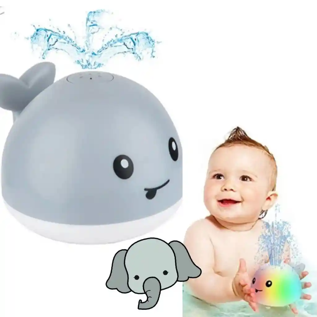 Haz de la hora de juego un momento divertido con este juguete para el agua en forma de ballena que enciende luces de colores y bota chorros de agua apenas entra en contacto con el agua; funciona con 3 pilas AAA no incluidas, se debe cerrar bien con los tornillos y listo para usar ya que no se le entra el agua 💦