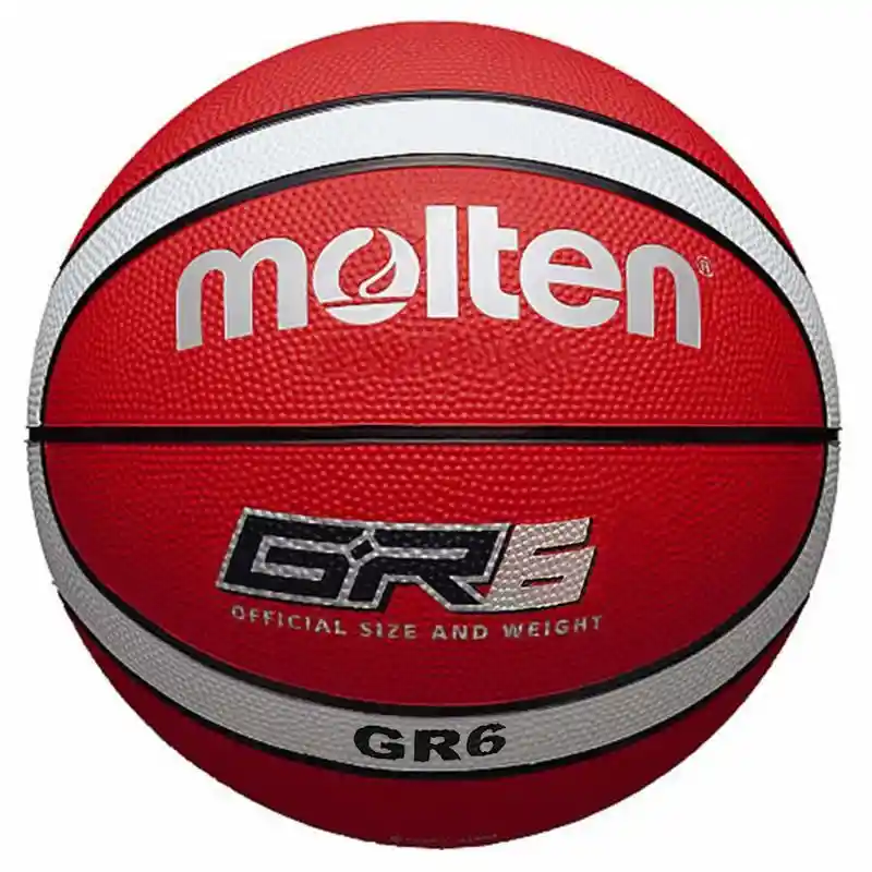 Balon Baloncesto Molten Basquetbol #6 BGRX6 Caucho 12 Paneles Practica tu deporte favorito con los mejores elementos, este balón para baloncesto tiene tecnología de contrapeso y alta retención de aire, aumenta su desempeño en superficies como madera y baldosa; debido a su excelente cubierta. Construcción tipo laminado al calor lo hace ser un producto bastante resistente. Forma marcada de caucho acolchada le dan el rebote perfecto. Cubierta suave de caucho amortiguada y textura rugosa para conseguir un agarre superior y excelente al tacto. Cubierta de cuero compuesto puede absorber el sudor para mantener el excelente rendimiento de control. - Marca: Molten. - Cubierta: Caucho. - Diseño: Giugiaro, 12 paneles. - Estructura: Vulcanizado o moldeado. - Neumático: Butilo. - Tamaños: 6. - Superficie: Granulada - Terreno de Juego: Exteriores El Paquete Incluye: - Balón Baloncesto Molten BGRX6.