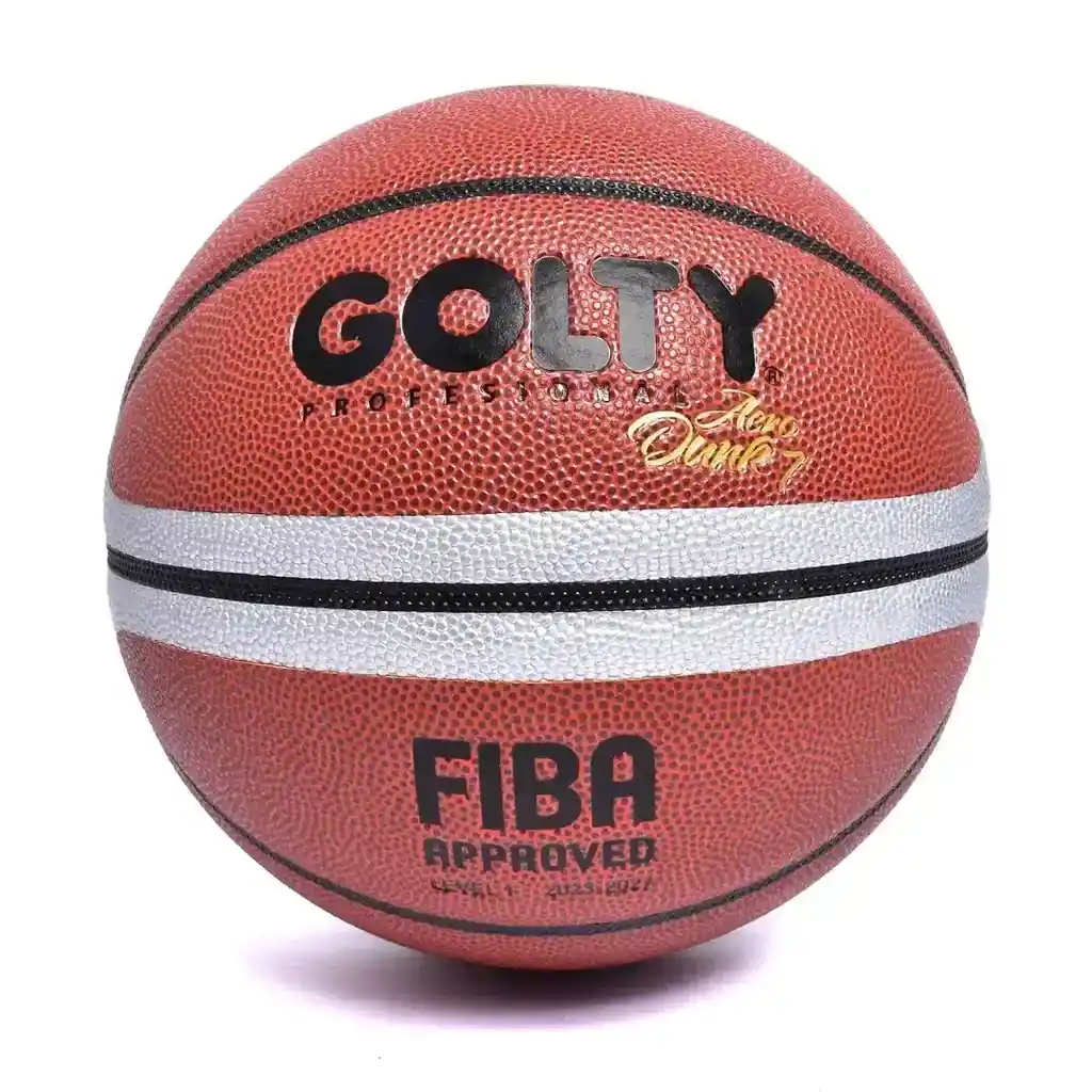 SKU: BC018 Código: T671592 Balón profesional que cumple con especificaciones de la FIBA. Neumático de caucho butilo de dos capas. Enmallado en hilo 100% nylon alta tenacidad. Construcción Laminado al calor. Cubierta antideslizante en cuero superior PU. Balón #7 Rebote: 120 a 140 cm Circunferencia: 75 a 77 cm Peso: 580 a 620 gr. Marca: Golty