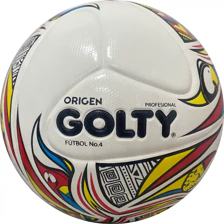 BALÓN DE FÚTBOL #4 GOLTY PROFESIONAL ORIGEN THERMOTECH FIFA. El nombre del balón es “Golty Origen”, Tamaño #4, narra las raíces en las cuales el fútbol colombiano se desarrolla. El nuevo protagonista de la Liga BetPlay cuenta con un colorido diseño que evidencian animales y colores representativos de la cultura colombiana. Lo más llamativo de la pelota es la presencia de un guacamayo, un pelícano y lo que sería un jaguar alrededor de sus diseños tribales, demostrando la gran inspiración en la biodiversidad nacional, que tuvo la empresa manufacturera. Esta construido con tecnología Thermotech, generando perfecta esfericidad y ranuras entre los paneles termo-laminados cumpliendo con especificaciones de la FIFA además Posee Cámara de aire de caucho sintético recubierta con láminas textiles 100% algodón de alta densidad entretejidas y cruzadas de igual manera agrega Almohadilla de espuma EPDM híbrido Asegurando un tacto suave y consistente en todas las condiciones adicionalmente Incorpora Cubierta PU. El sellado térmico todavía está presente e incluso tendría la misma cantidad de paneles que su antecesor el “Forza” por lo que su rendimiento es igual de estable. **LA GARANTÍA CUBRE ÚNICAMENTE DEFECTOS ASOCIADOS A LA FABRICACIÓN DEL PRODUCTO O AL ESTADO DE LOS MATERIALES, CUALQUIER DAÑO CAUSADO POR USO, MANIPULACIÓN O MANTENIMIENTO INAPROPIADO DEL PRODUCTO, NO ESTÁ CONTEMPLADO DENTRO DE LA GARANTÍA. Envíos a nivel nacional ONE ZONE SPORT NIT: 901.451.888-6