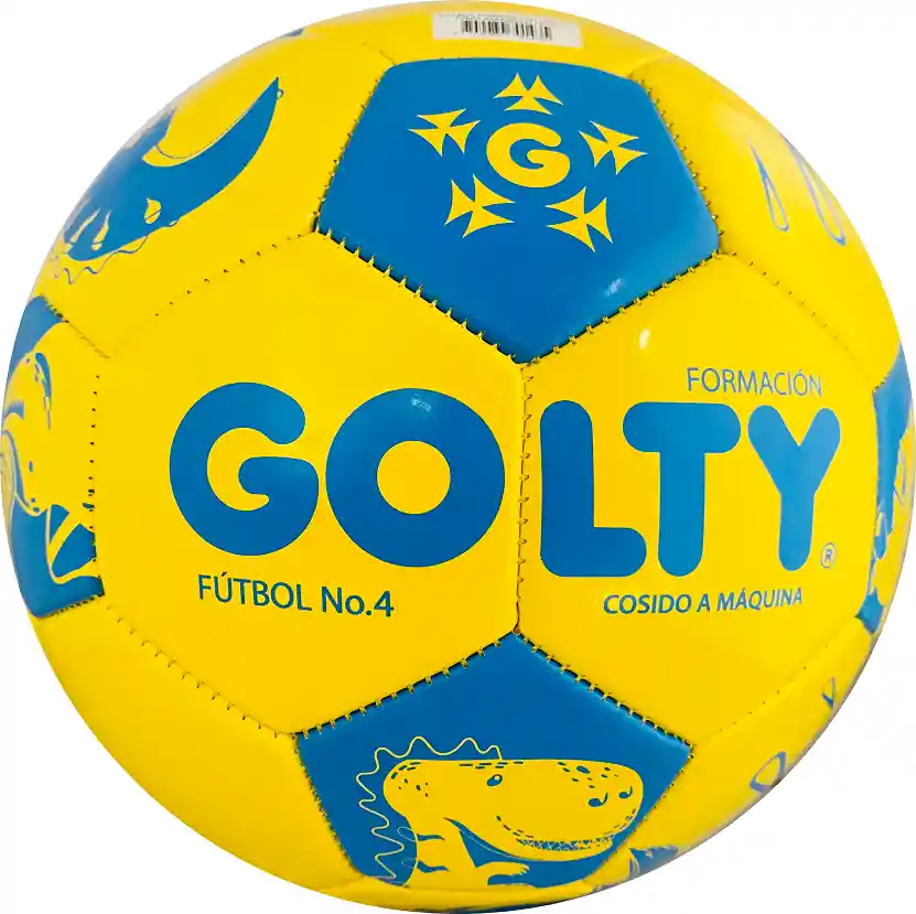 BALÓN DE FUTBOL FORMACIÓN GOLTY DINO COSIDO A MAQUINA Balón de uso formación o recreativo, no para uso profesional. Es un balón que está diseñado con materiales de buena calidad. Es más, de uso para inicio en el arte del futbol, te ayudara a que tengas un excelente desempeño. Balón cosido a máquina, maneja total esfericidad y un rebote controlado, te brinda un equilibrio ideal. El balón se envía inflado con la calibración recomendada de fábrica, (Máximo 6 lb). CARACTERÍSTICAS: - Buen rebote. - Total esfericidad. - Uso recreativo. - Peso 350 a 390 gramos. - Circunferencia 63 a 66 centímetros. - Rebote 100 a 130 centímetros. - Calibre 6 libras máximo. DISTRIBUIDOR AUTORIZADO Envíos a nivel nacional ONE ZONE SPORT NIT: 901.451.888-6