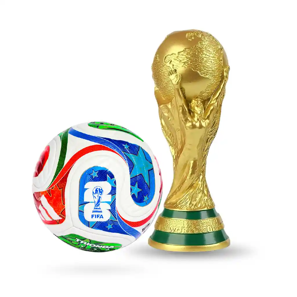 ¡Lleva la Gloria del Estadio a tu Propio Espacio! ¿Eres de los que vive cada partido como si estuviera en la cancha? No te conformes con ver el mundial por TV. Ahora puedes tener en tus manos los dos íconos más grandes del deporte rey. Este exclusivo Kit de Colección Innovo+ ha sido diseñado para los verdaderos “diez” que saben que el fútbol no es solo un juego, es un estilo de vida. ¿Por qué este combo es imprescindible para ti? El Trofeo de tus Sueños (Con un Secreto): No es solo una réplica de la Copa del Mundo de 30 cm con acabado dorado premium. Es también una Alcancía Funcional de alta resistencia. Ahorra para tu próximo viaje al estadio mientras decoras tu oficina o habitación con el máximo símbolo de victoria. Balón Trionda – El Protagonista del Juego: Siente la textura y el peso de un balón diseñado para destacar. Con sus 22 cm de diámetro y gráficos vibrantes, es la pieza perfecta para demostrar tu talento o exhibirlo como una obra de arte deportiva. Calidad de Exportación: Fabricados con materiales duraderos que mantienen su brillo y forma, garantizando que tu pasión no se desgaste con el tiempo.