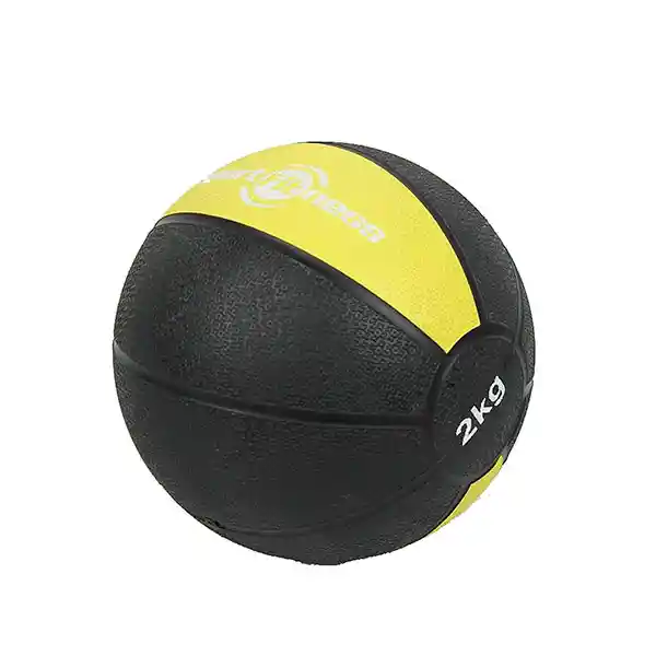 Balón Medicinal de Rebote. 2 Kilos de Peso Color Negro Con Amarillo Material en Caucho de Rebote Peso Con Resina de Polietileno de Alta Densidad. Diámetro 62 cm