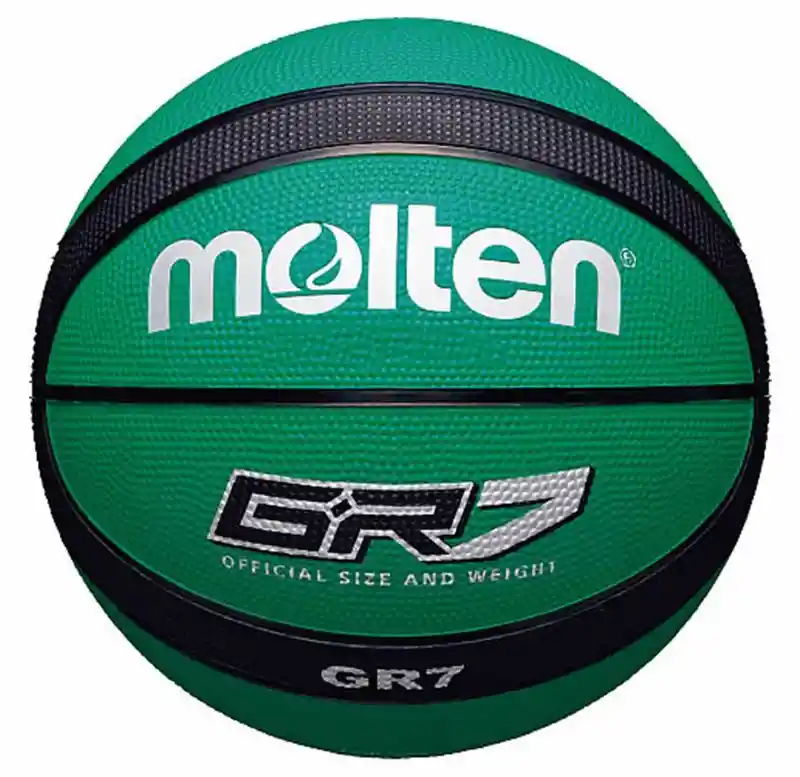 Balon Para Baloncesto Molten Profesional BGR7 Caucho # 7 Practica tu deporte favorito con los mejores elementos, este balón para baloncesto tiene tecnología de contrapeso y alta retención de aire, aumenta su desempeño en superficies como madera y baldosa debido a su excelente cubierta. Construcción tipo laminado al calor lo hace ser un producto bastante resistente. Forma marcada de caucho acolchada le dan el rebote perfecto. Cubierta suave de caucho amortiguada y textura rugosa para conseguir un agarre superior y excelente al tacto. Cubierta de cuero compuesto puede absorber el sudor para mantener el excelente rendimiento de control. - No guardar los balones húmedos, dejarlos secar, el guardarlos húmedos en el caso de los balones cosidos provoca que el hilo se deteriore y por ende se descosan, en el caso de los balones laminados es probable el desprendimiento de los cascos. - Utilizar los balones en el terreno apropiado según el material. - Adquirir el tamaño del balón para la edad adecuada. - Marca: Molten: - Cubierta: Caucho - Diseño Giugiaro, 12 paneles - Estructura: Vulcanizado o moldeado - Neumático: Butilo - Tamaños: 7 Adulto - Superficie: Granulada - Terreno de Juego: Exteriores El Paquete Incluye: - Balon Para Baloncesto Molten Profesional BGR7 Caucho # 7.