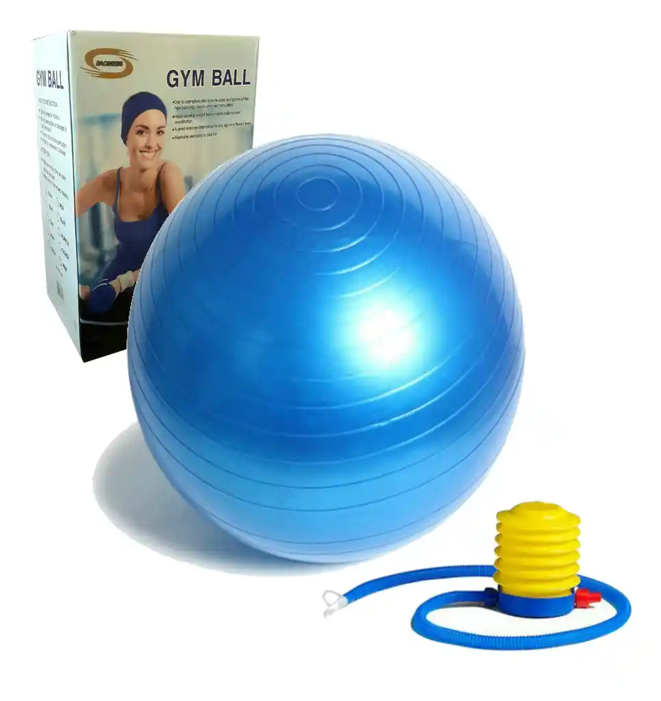 Dimensiones: 55 cm de diámetro. Peso Máximo: 100 Kilos BOLA PILATES 55CM + INFLADOR Mejora la postura, el balance y la flexibilidad. Construido en material antiexplosion. Adelgaza cadera y muslos. Ideal para trabajar su abdomen, sentadillas, alinear la columna y tonificar músculos en general. Complemento para ejercicio de Yoga y Pilates. El fitball es una pelota redonda, rellena de aire y de grandes dimensiones, muy utilizada frecuentemente en los gimnasios como método de tonificación y fortalecimiento muscular, especialmente de los abdominales y zona lumbar, además de otras funciones de las que hablaremos mas tarde, como ayudar a mejorar el equilibrio. También recibe el nombre de balón suizo y su diámetro varía entre los 35 y los 85 cm. Además del uso como tonificador y fortalecedor, es un elemento muy utilizado en fisioterapia y rehabilitación.