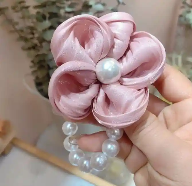 Bamba de perlas grandes y flor, es ideal para peinar tu cabello, es muy sutil y va muy bien con cualquier tipo de cabello Color: Rosado