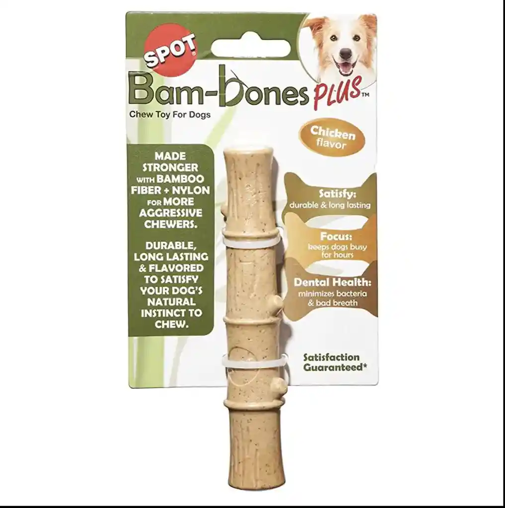 Popular Bam-Bones ahora hecho con fibras de nylon y bambú. Adecuado para masticadores más agresivos. Sabor a pollo