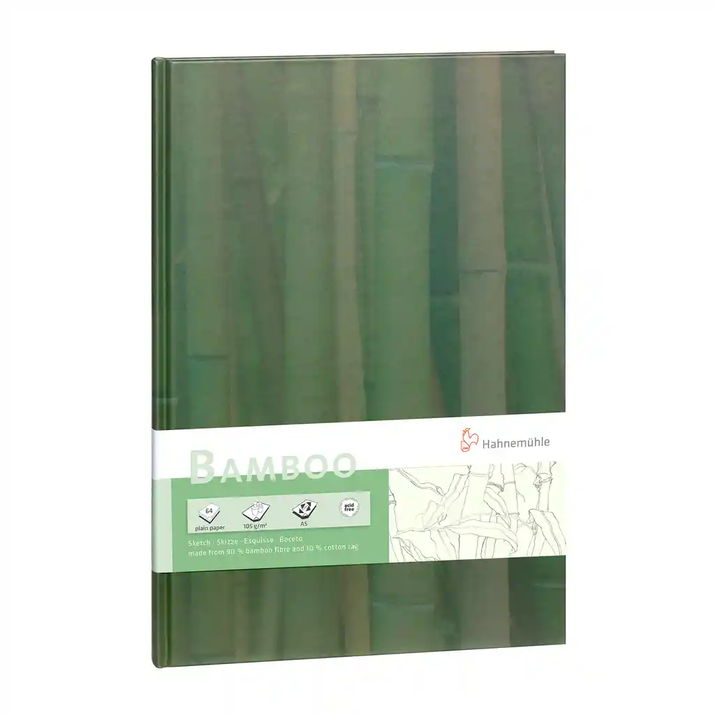 Bamboo Sketch Book Dibujo | HahnemühleLos cuadernos de dibujo de bambú verde son realmente llamativos: en el exterior un motivo de tapa con tallos de bambú, en el interior un papel hecho de 90% de bambú y 10% de fibras de algodón. Los recursos de materia prima se conservan mediante el uso de bambú de rápido crecimiento.El papel de boceto blanco natural con una superficie adherente es ideal para dibujar y dibujar con lápiz, carboncillo y tiza roja. Sus propiedades de abrasión garantizan colores ricos y contrastes claros. Los cuadernos de dibujo Bamboo están disponibles en formato vertical en DIN A4 y DIN A5 con 128 páginas cada uno.Calidad, buen servicio y precio justo!butaca art