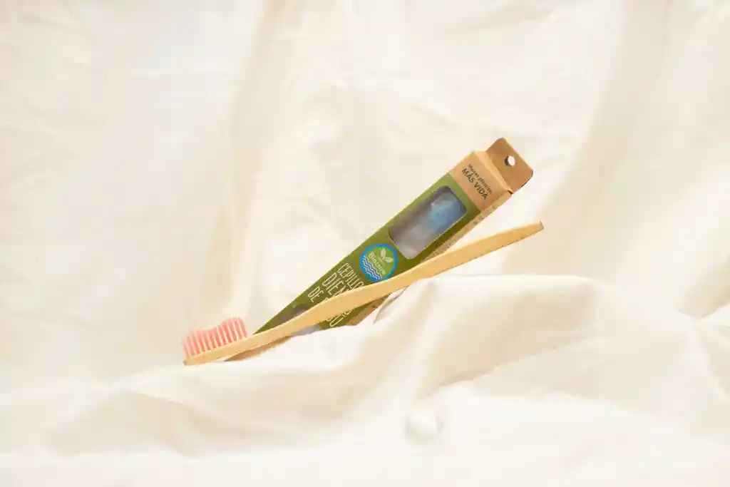Mango 100% bambú, cerdas de nylon libre de BPA y de dureza media. Vegano. Antimicrobiano. 3-4 meses de vida útil. Proveedor: Biocare